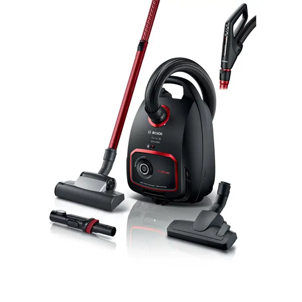 شرکت بوش در طراحی محصولات خود همواره فلسفه «کارایی در عین سادگی» را دنبال میکند و این اصل در ظاهر این مدل نیز بهخوبی مشهود است. بدنه دستگاه از پلاستیک فشرده و باکیفیت بالا ساخته شده که مقاومت آن را در برابر ضربات و استفادههای مکرر تضمین میکند. ترکیب رنگهای تیره و مات با جزئیات براق، ظاهری مدرن و در عین حال حرفهای به آن بخشیده است. توجه به اصول ارگونومی در طراحی دستگیره حمل و همچنین محل قرارگیری دکمهها، استفاده از دستگاه را بسیار آسان میسازد. چرخهای بزرگ و روان آن که قابلیت چرخش ۳۶۰ درجه دارند، حرکت جاروبرقی را بر روی انواع سطوح، از فرشهای ضخیم گرفته تا سرامیک و پارکت، نرم و بیدردسر میکنند. در مجموع، طراحی این محصول نه تنها زیباست، بلکه کاملاً کاربردی بوده و نشاندهنده تعهد بوش به تولید محصولی بادوام و کاربرپسند است که برای سالها خدمترسانی ساخته شده است.