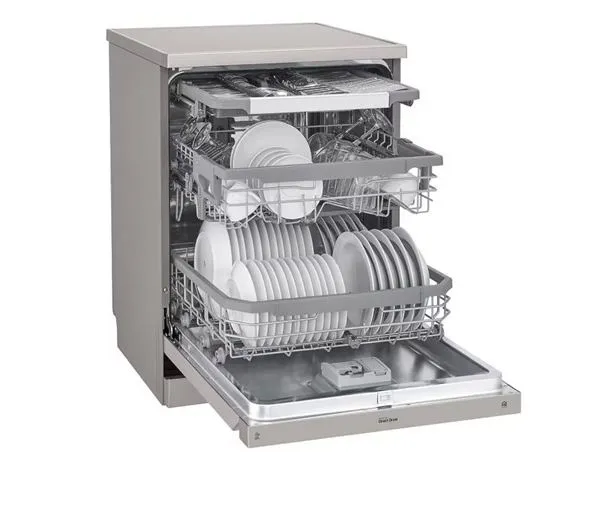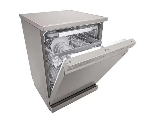 الجی در طراحی محصولات خود همواره به هماهنگی با دکوراسیون داخلی آشپزخانههای امروزی توجه ویژهای دارد. این مدل نیز از این قاعده مستثنی نیست و با ظاهری مینیمال و مدرن، به راحتی با هر سبکی از طراحی داخلی سازگار میشود. بدنه خارجی دستگاه که معمولاً در رنگهای نقرهای یا سفید عرضه میشود، از ورق فولادی با کیفیت و پوشش ضد لک ساخته شده است که علاوه بر زیبایی، دوام بالایی داشته و به راحتی تمیز میشود. پنل کنترلی دستگاه به صورت یکپارچه و با دکمههای لمسی یا فیزیکی طراحی شده و یک نمایشگر LED خوانا، اطلاعات مربوط به برنامه انتخابی، زمان باقیمانده و وضعیت چرخهی شستشو را به وضوح نمایش میدهد. اما مهمتر از ظاهر، ساختار داخلی ماشین ظرفشویی ال جی 435 است؛ محفظه داخلی آن به طور کامل از فولاد ضد زنگ (Stainless Steel) ساخته شده که مزایای متعددی از جمله مقاومت کامل در برابر زنگزدگی، عدم جذب بو و لکه، و کمک به خشک شدن بهتر ظروف در دمای بالا را به همراه دارد. این ساختار مستحکم، طول عمر دستگاه را تضمین کرده و محیطی کاملاً بهداشتی برای شستشوی ظروف فراهم میآورد.