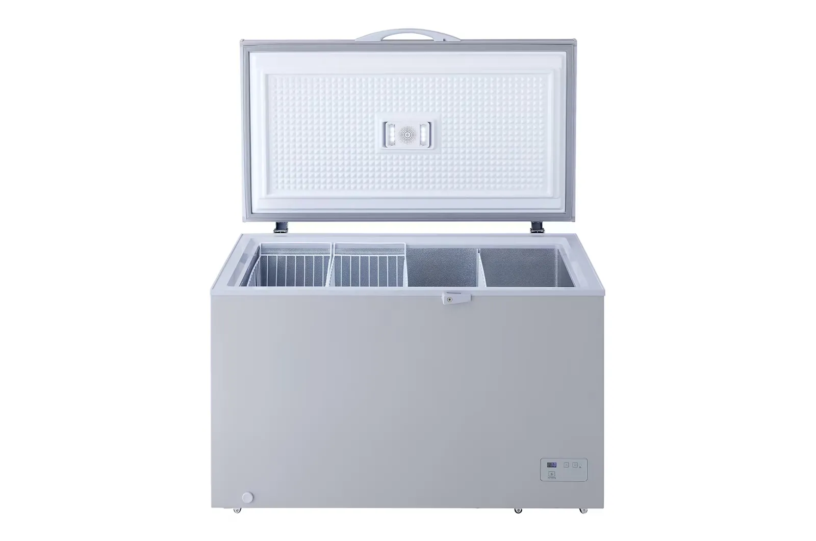 یکی از اصلی‌ترین دلایل گرایش مصرف‌کنندگان به سمت فریزرهای صندوقی، نیاز به فضای ذخیره‌سازی حجیم و یکپارچه است و فریزر صندوقی ال جی مدل GCS415SQFG در این زمینه عملکردی خیره‌کننده دارد. این دستگاه با ظرفیت ناخالص تقریبی ۴۱۵ لیتر (که بسته به استانداردهای اندازه‌گیری ممکن است کمی متفاوت اعلام شود)، فضایی بسیار جادار را در اختیار کاربر قرار می‌دهد که برای ذخیره‌سازی اقلام بزرگ مانند لاشه‌های گوشت، بسته‌بندی‌های بزرگ سبزیجات و یا خریدهای عمده فصلی ایده‌آل است. برخلاف فریزرهای کشویی که فضا را محدود به ابعاد کشو می‌کنند، فضای داخلی این فریزر خوابیده ال جی کاملاً باز و منعطف است و به شما اجازه می‌دهد تا از حداکثر گنجایش دستگاه بهره ببرید. البته برای جلوگیری از بی‌نظمی و دسترسی دشوار به مواد غذایی کوچک‌تر که در کف فریزر قرار می‌گیرند، ال جی سبدهای فلزی مفتولی (Wire Baskets) مستحکم و متحرکی را در قسمت فوقانی تعبیه کرده است که امکان سازماندهی و دسترسی سریع به اقلام پرمصرف را فراهم می‌سازد. این مدیریت هوشمندانه فضا باعث می‌شود تا کاربر ضمن بهره‌مندی از یک محفظه غول‌پیکر برای انجماد، نظم و ترتیب مواد غذایی خود را نیز حفظ کند و دغدغه‌ای بابت کمبود جا در ایام شلوغ سال یا مهمانی‌های بزرگ نداشته باشد.