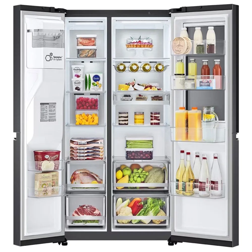 ظرفیت و سازماندهی فضای داخلی، یکی از معیارهای کلیدی در انتخاب یک یخچال برای خانوادههاست. این مدل با ارائه ظرفیت خالص قابل توجهی (معمولاً در حدود 674 لیتر)، فضای وسیع و کاملاً بهینهسازیشدهای را برای نگهداری انواع مواد غذایی در اختیار کاربر قرار میدهد. مهندسی هوشمندانه فضای داخلی به گونهای است که از هر سانتیمتر مکعب آن به بهترین شکل ممکن استفاده شده است. در بخش یخچال، قفسههای متعدد از جنس شیشه حرارتدیده (Tempered Glass) با قابلیت تنظیم ارتفاع، امکان چیدمان ظروف با اندازههای مختلف را فراهم میکنند. کشوی Utility Box برای نگهداری اقلام کوچکتر مانند پنیر و کره و کشوی Moist Balance Crisper™ با حفظ رطوبت در سطح بهینه، محیطی ایدهآل برای نگهداری طولانیمدت میوهها و سبزیجات فراهم میآورد. در بخش فریزر نیز، قفسهها و کشوهای جادار، سازماندهی مواد غذایی منجمد را تسهیل میبخشند. یکی از نوآوریهای مهم در این بخش، سیستم یخساز SpacePlus® Ice System است که با طراحی باریک و تعبیه شدن در داخل درب، فضای قفسههای فریزر را اشغال نکرده و ظرفیت قابل استفاده را به حداکثر میرساند. فضای داخلی یخچال ال جی X287 به گونهای طراحی شده است که پاسخگوی نیازهای یک خانواده پرجمعیت بوده و دسترسی به تمام مواد غذایی را آسان و سریع میسازد.