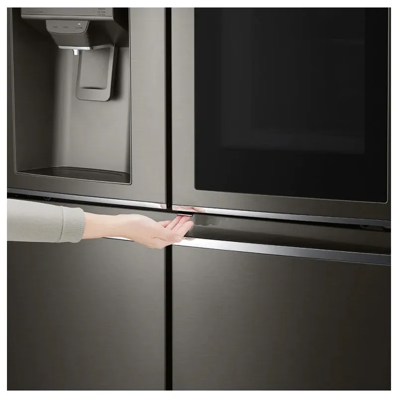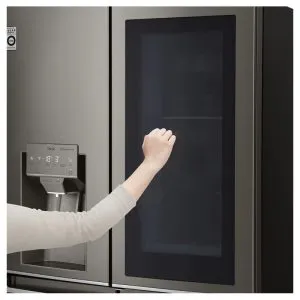 اولین مواجهه با هر محصولی از طریق ظاهر آن شکل میگیرد و الجی در این زمینه به بلوغی کمنظیر دست یافته است. طراحی یخچال ال جی X24 تلفیقی هوشمندانه از مینیمالیسم مدرن و کارایی فناورانه است. بدنه این دستگاه با استفاده از فولاد ضد زنگ باکیفیت و پوشش مات ضد اثر انگشت، جلوهای لوکس و حرفهای به آشپزخانه میبخشد و نگهداری و تمیز کردن آن را نیز تسهیل میکند. اما نقطه عطف طراحی این مدل، بدون شک فناوری InstaView Door-in-Door است. این ویژگی شامل یک پنل شیشهای آینهای بر روی درب سمت راست است که با دو ضربه آرام، روشن شده و به شما اجازه میدهد محتویات داخل بخش دسترسی سریع را بدون نیاز به باز کردن درب اصلی مشاهده کنید. این نوآوری نه تنها از اتلاف سرمای قابل توجهی (تا ۴۱ درصد) جلوگیری میکند، بلکه دسترسی به اقلام پرمصرف مانند نوشیدنیها و لبنیات را بسیار سریعتر و آسانتر میسازد. دستگیرههای پاکتی (Pocket Handles) و آبریز و یخساز اتوماتیک که به شکلی یکپارچه در بدنه تعبیه شدهاند، خطوط صاف و پیوسته طراحی را تکمیل کرده و حس یکپارچگی و هماهنگی را به اوج میرسانند.
