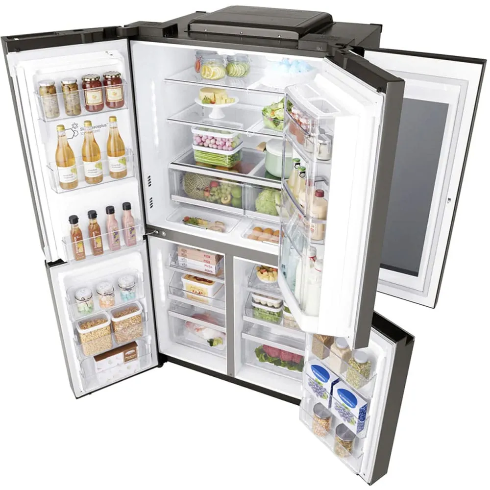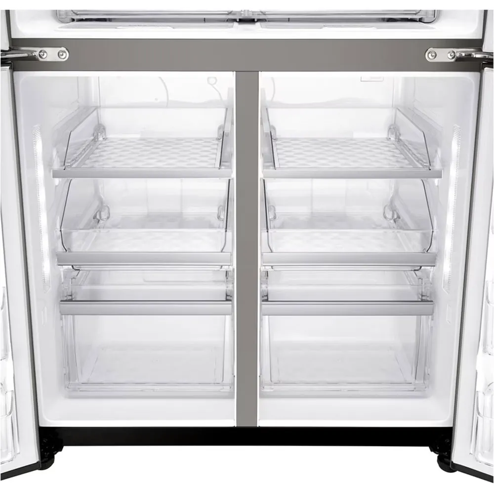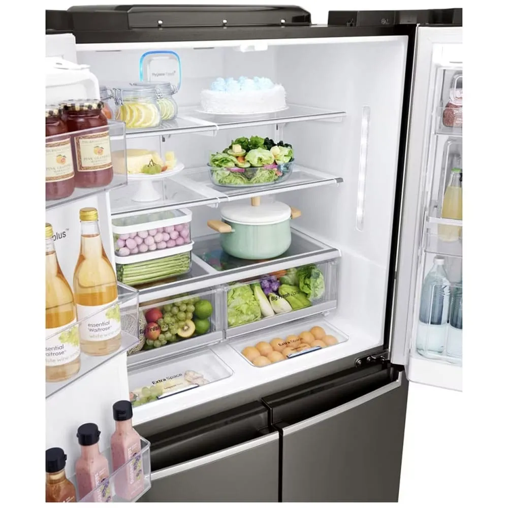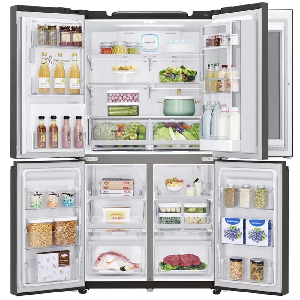 یکی از مهمترین معیارها برای انتخاب یک یخچال، ظرفیت و نحوه مدیریت فضای داخلی آن است. با ظرفیتی معمولاً در حدود ۳۰ فوت مکعب (معادل بیش از ۸۰۰ لیتر)، این مدل برای خانوادههای متوسط تا پرجمعیت که نیاز به فضای ذخیرهسازی گسترده دارند، یک گزینه ایدهآل محسوب میشود. مهندسی فضای داخلی یخچال ال جی X24 به گونهای انجام شده که از هر سانتیمتر آن به بهینهترین شکل ممکن استفاده شود. قفسههای شیشهای نشکن (Tempered Glass) با قابلیت تنظیم ارتفاع، به شما امکان میدهند تا ظروف بزرگ و اقلام حجیم را به راحتی جای دهید. وجود کشوهای متعدد با قابلیتهای ویژه، مانند کشوی Moist Balance Crisper که با حفظ رطوبت بهینه، تازگی میوهها و سبزیجات را برای مدت طولانیتری تضمین میکند، و کشوی Utility Box برای نگهداری اقلام کوچکتر مانند پنیر و کره، سازماندهی مواد غذایی را به سطح جدیدی ارتقا میدهد. در بخش فریزر نیز، سیستم یخساز SpacePlus که بر روی درب نصب شده، فضای قفسهها را آزاد کرده و ظرفیت قابل استفاده را به حداکثر میرساند. این تقسیمبندی هوشمندانه و منعطف، تضمین میکند که شما همواره فضای کافی برای تمام نیازهای خود در اختیار داشته باشید.