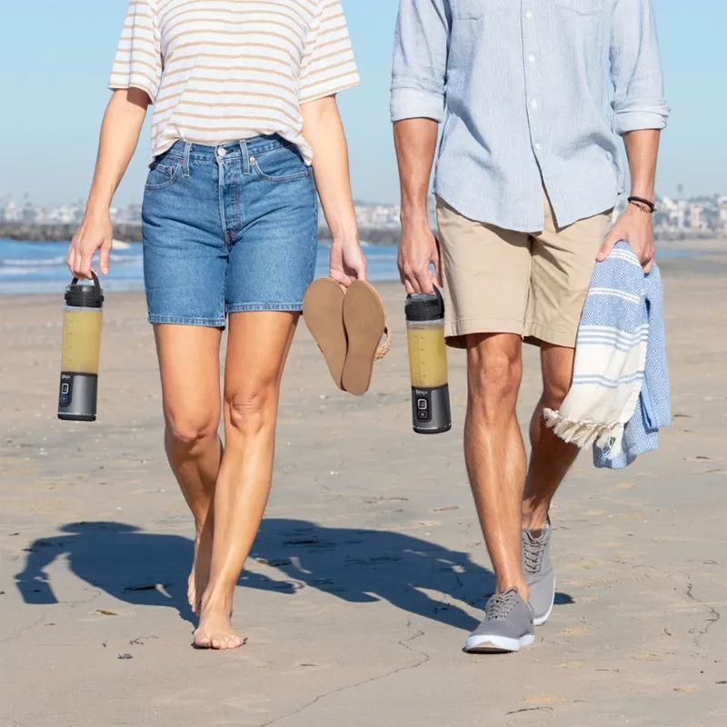 اولین مواجهه با هر محصولی از طریق طراحی آن صورت میگیرد و نینجا در این زمینه عملکردی درخشان داشته است. طراحی شیکر شارژی نینجا 151 ترکیبی هوشمندانه از زیباییشناسی مدرن و اصول ارگونومی است. بدنه استوانهای شکل آن با خطوط صاف و پرداخت مات، حسی از کیفیت و استحکام را القا میکند. استفاده از پلاستیک باکیفیت و فاقد مواد مضر (BPA-Free) در ساخت مخزن، سلامت کاربر را تضمین کرده و در عین حال وزن دستگاه را برای حمل آسان، بهینه نگه میدارد. درب پیچی آن به طور کامل آببندی شده و دارای یک دهانه برای نوشیدن آسان است که با یک درپوش محکم محافظت میشود. یکی از نکات برجسته در طراحی این محصول، دستگیره حمل یکپارچه با درب است که جابجایی آن را بسیار راحت میکند. واحد موتور که در پایه دستگاه قرار گرفته، به شکلی طراحی شده که پایداری خوبی روی سطوح صاف داشته باشد و پورت شارژ USB-C نیز به صورت هوشمندانهای در این بخش تعبیه شده است. در مجموع، نینجا محصولی را خلق کرده که نه تنها در باشگاه ورزشی، بلکه در محیط کار یا هنگام سفر نیز ظاهری شیک و حرفهای دارد.