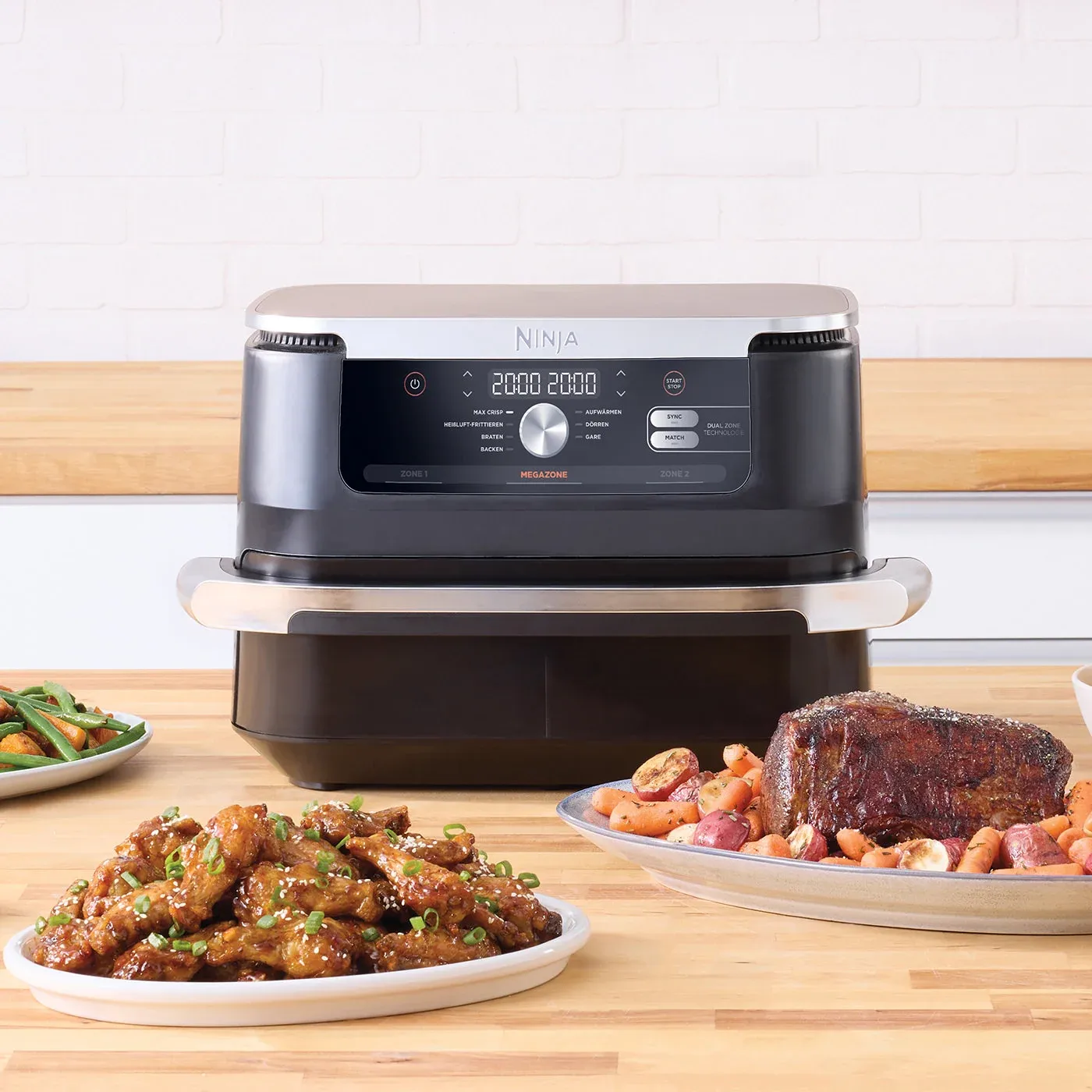 آنچه این مدل را از سایر رقبا متمایز می‌کند، مجموعه‌ای از امکانات ویژه و کاربردی است که فراتر از یک سرخ‌کن معمولی عمل می‌کنند. برجسته‌ترین ویژگی، قابلیت “MegaZone™” است که با حذف جداکننده، بزرگترین فضای پخت در میان سرخ‌کن‌های نینجا را فراهم می‌آورد و انعطاف‌پذیری بی‌نظیری را برای پخت غذاهای حجیم ارائه می‌دهد. علاوه بر این، دستگاه دارای ۷ برنامه پخت هوشمند و از پیش تعریف شده است: Max Crisp (برای حداکثر تردی)، Air Fry (سرخ کردن با هوا)، Roast (کباب کردن)، Bake (پختن کیک و نان)، Reheat (گرم کردن مجدد)، Dehydrate (میوه خشک‌کن) و Prove (برای ور آمدن خمیر). این تنوع برنامه‌ها، سرخ کن نینجا دوقلو AF500 را به یک دستیار همه‌کاره در آشپزخانه تبدیل می‌کند. قابلیت‌های SYNC و MATCH نیز از دیگر امکانات کلیدی هستند؛ SYNC برای اتمام همزمان پخت و MATCH برای اعمال تنظیمات یکسان روی هر دو سبد، مدیریت فرآیند آشپزی را به سطح جدیدی از سادگی و دقت ارتقا می‌دهند. همچنین، تمامی قطعات جداشونده مانند کشو، صفحه کریسپر و جداکننده، دارای پوشش نچسب و قابل شستشو در ماشین ظرفشویی هستند که نظافت دستگاه را بسیار آسان می‌کند.