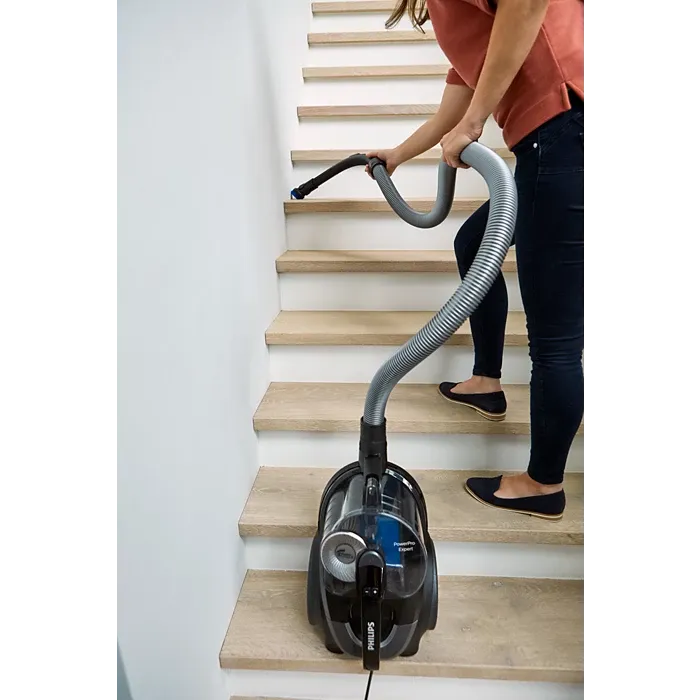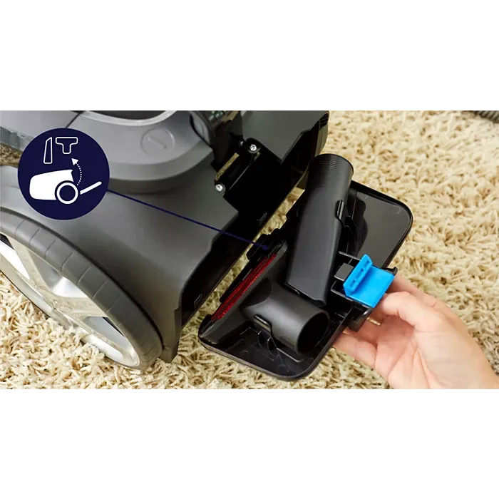 یکی از مهمترین نقاط قوت این دستگاه که آن را برای خانوادههای دارای فرزند کوچک یا افراد مبتلا به آلرژی ایدهآل میسازد، سیستم فیلتراسیون پیشرفته Allergy H13 است که قادر به جذب 99.9 درصد از ذرات ریز گرد و غبار، گرده گیاهان و موی حیوانات خانگی میباشد. این سیستم فیلتراسیون تضمین میکند که هوای خروجی از دستگاه بسیار پاکیزهتر از هوای محیط است و به نوعی مانند یک دستگاه تصفیه هوا عمل میکند؛ علاوه بر این، سیستم قفل حسگر آلرژی (Allergy Lock) اطمینان حاصل میکند که مخزن به طور کامل و بدون نشت هوا بسته شده است و تا زمانی که این عایقبندی کامل نشود، دستگاه روشن نخواهد شد. از دیگر امکانات هوشمند جارو برقی فیلیپس fc9747 میتوان به برس نرم ادغام شده در دسته جارو اشاره کرد که همیشه در دسترس است و برای گردگیری سریع سطوح، مبلمان و وسایل تزیینی بدون ایجاد خط و خش بسیار کاربردی است. همچنین محفظه مخصوص نگهداری لوازم جانبی در قسمت پشت دستگاه تعبیه شده تا کاربر در حین کار به راحتی به تمامی سریها دسترسی داشته باشد و از گم شدن قطعات جلوگیری شود.