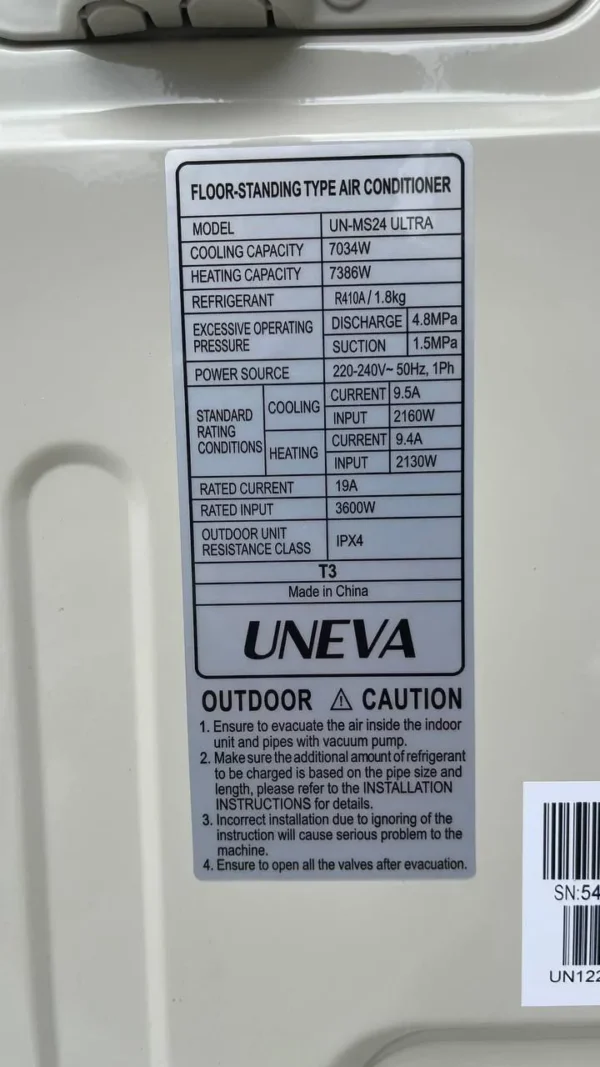 در نگاه اول، آنچه توجه را به خود جلب میکند، زبان طراحی مدرن و مینیمالیستی این دستگاه است. پنل داخلی با خطوط صاف، گوشههای مدور و رنگ سفید یکدست، به راحتی با دکوراسیونهای مختلف داخلی هماهنگ میشود و از ایجاد ناهنجاری بصری در فضا جلوگیری میکند. یونیوا در ساخت این پنل از پلاستیک ABS با کیفیت بالا بهره برده است که علاوه بر ایجاد ظاهری براق و زیبا، مقاومت بالایی در برابر تغییر رنگ ناشی از تابش نور خورشید و همچنین ضربههای احتمالی دارد. یکی از ویژگیهای جذاب در طراحی کولر گازی یونیوا اولترا T3، وجود یک نمایشگر دیجیتال مخفی (Hidden Display) است که تنها در زمان روشن بودن دستگاه و اعمال تنظیمات، اطلاعاتی نظیر دمای تنظیم شده و حالت عملکرد را به شکلی خوانا نمایش میدهد و در حالت خاموش، کاملاً در بدنه پنل محو میشود. در بخش خارجی نیز، یونیت کندانسور با ورقهای فلزی مستحکم و پوشش ضد زنگ و ضد خوردگی ساخته شده است تا در برابر شرایط جوی نامساعد مانند باران، رطوبت بالا و گرد و غبار، حداکثر دوام و طول عمر را داشته باشد. این توجه به جزئیات در ساختار بدنه، نشاندهنده تلاش سازنده برای ارائه محصولی است که نه تنها از نظر عملکردی، بلکه از نظر زیباییشناسی و دوام نیز بتواند رضایت کاربران را جلب نماید.